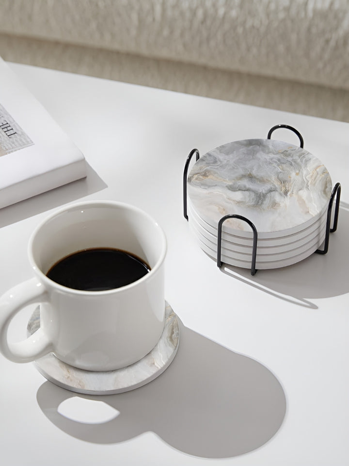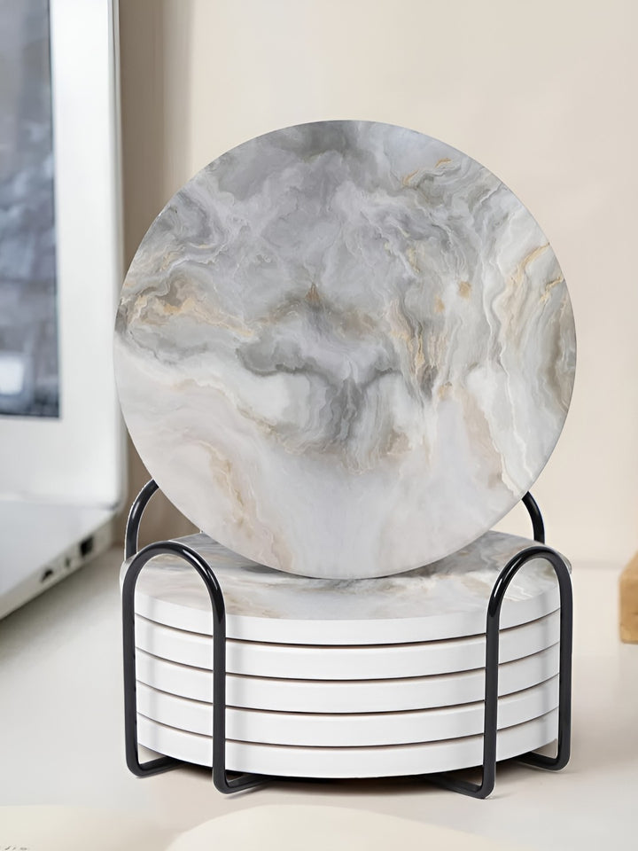 Set content: 6 coastersColour: Grey, White and Black