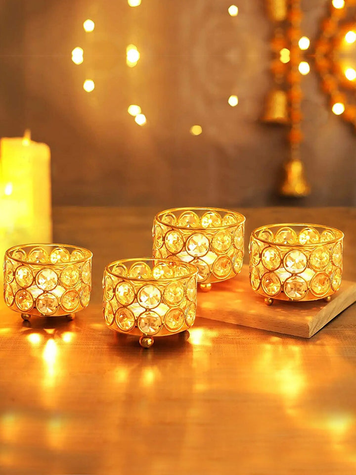 Set Content: Set of 4 Crystal Studded Tealight Candle HolderColour: Gold