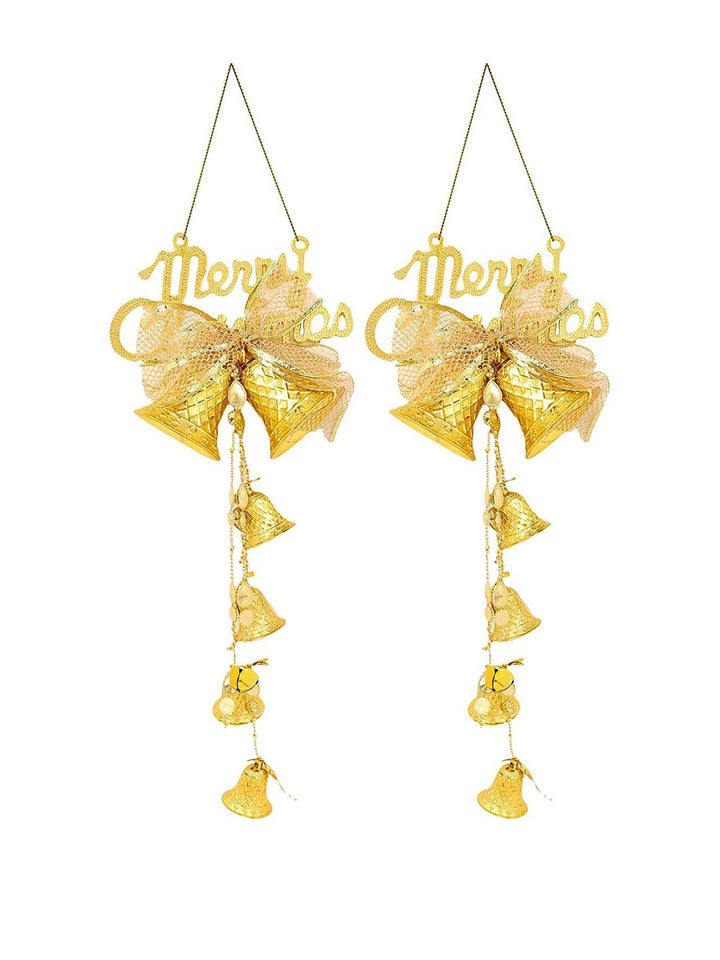 Set of 2 Gold-Toned Christmas Wall Door Door Hanging Bells DecorativeType: Hanging