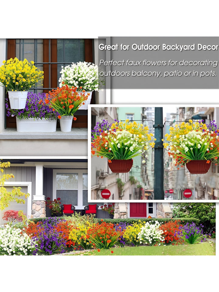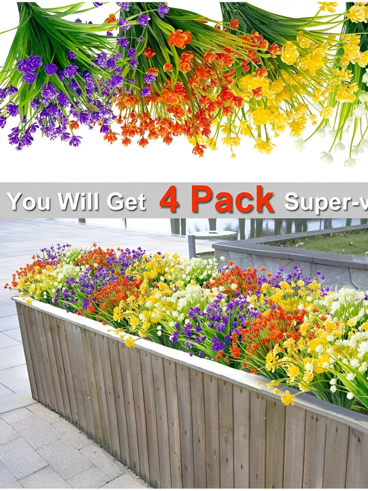 Pack of 4 Artificial Spring Grass Lotus Flower Bunch (Vase not Included)Color - Multicolor