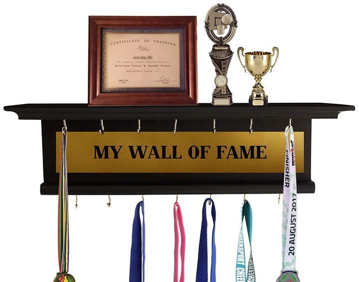 Wall Decorative Medal and Trophy Display Hanger ShelfThe Package Contains:- 1 Medal hanger holder with Trophy shelf rack(Each medal hanger have 16 knobs).